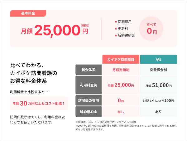 1. 何件訪問しても月額25,000円(税別)、初期費用・更新料・解約違約金すべて0円
