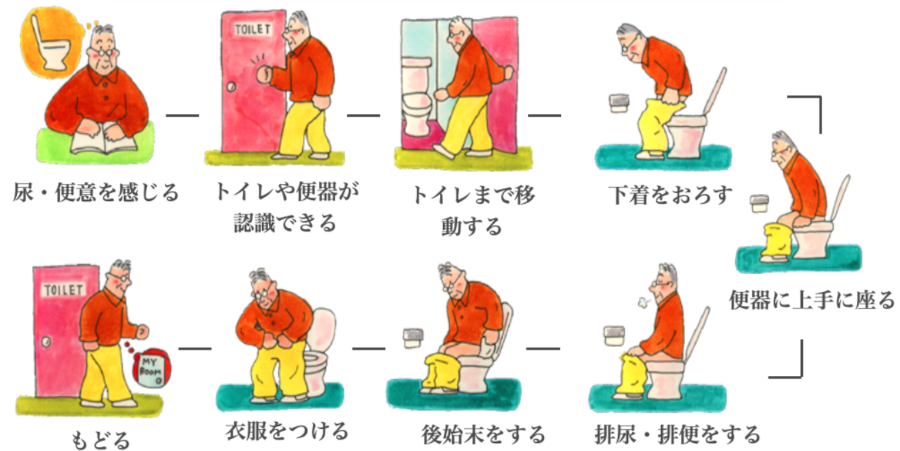 この一連の行動がうまくつながらないと、排泄の“困りごと”が生じます。