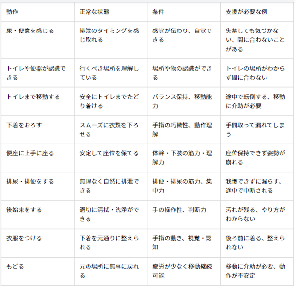 排泄を支える動作と、その“正常・支援ポイント”を知る