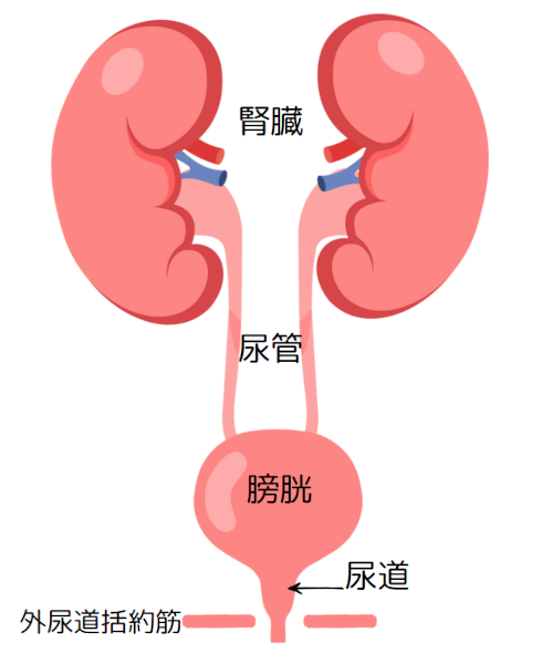 尿とは:体内の老廃物や余分な水分・塩分を、腎臓で血液からろ過し、体外へ排出する液体のことです。腎臓で作られた尿は尿管を通って膀胱に蓄えられ、一定量溜まると尿意を感じて尿道から排出されます。