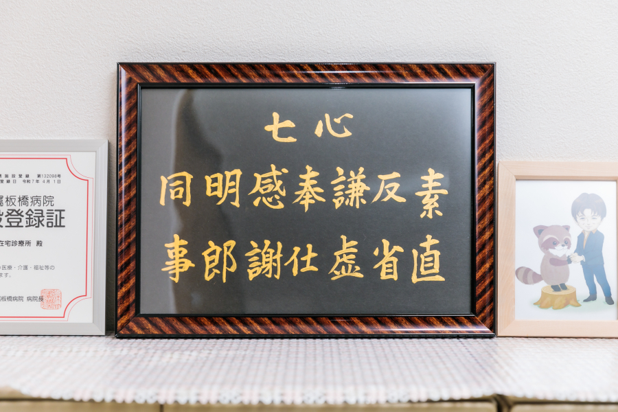 診療所名の、ななみは七つの心。素直・反省・謙虚・奉仕・感謝・明朗・同事の七心(ななみ)を大切に、病気を診るだけでなく、その方の暮らしや人生全体を支える姿勢を大切にし、地域に根ざした診療を心がけています。