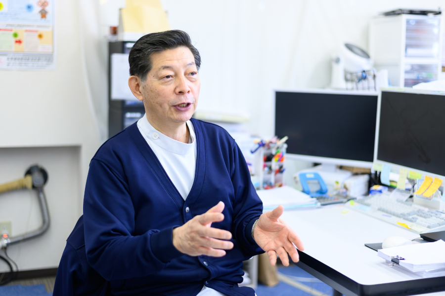 理学療法士は2名です。息子と親子で働いています。2年後には息子に社長を譲りたいと考えています。リハビリを提供することで、看護だけでは改善が難しい動作の改善が期待できます。座位保持や寝返り、おむつ交換などがスムーズになることで、利用者の生活の質が向上します。